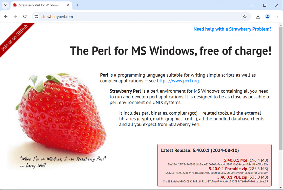 The installation wizard will tell you when the PERL language has been successfully installed. Make sure the bin directory has been added to the search path. This is an old school technique for MS DOS but used by many client applications.