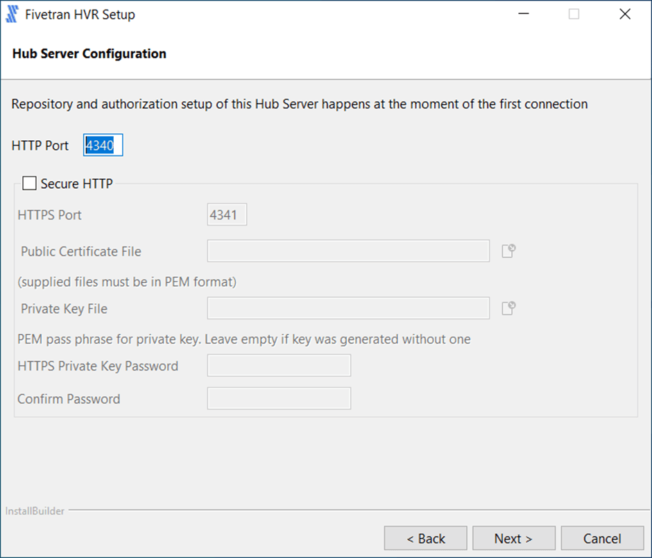 The default port for the HVR software is 4340. Let’s configure the repository at this time.