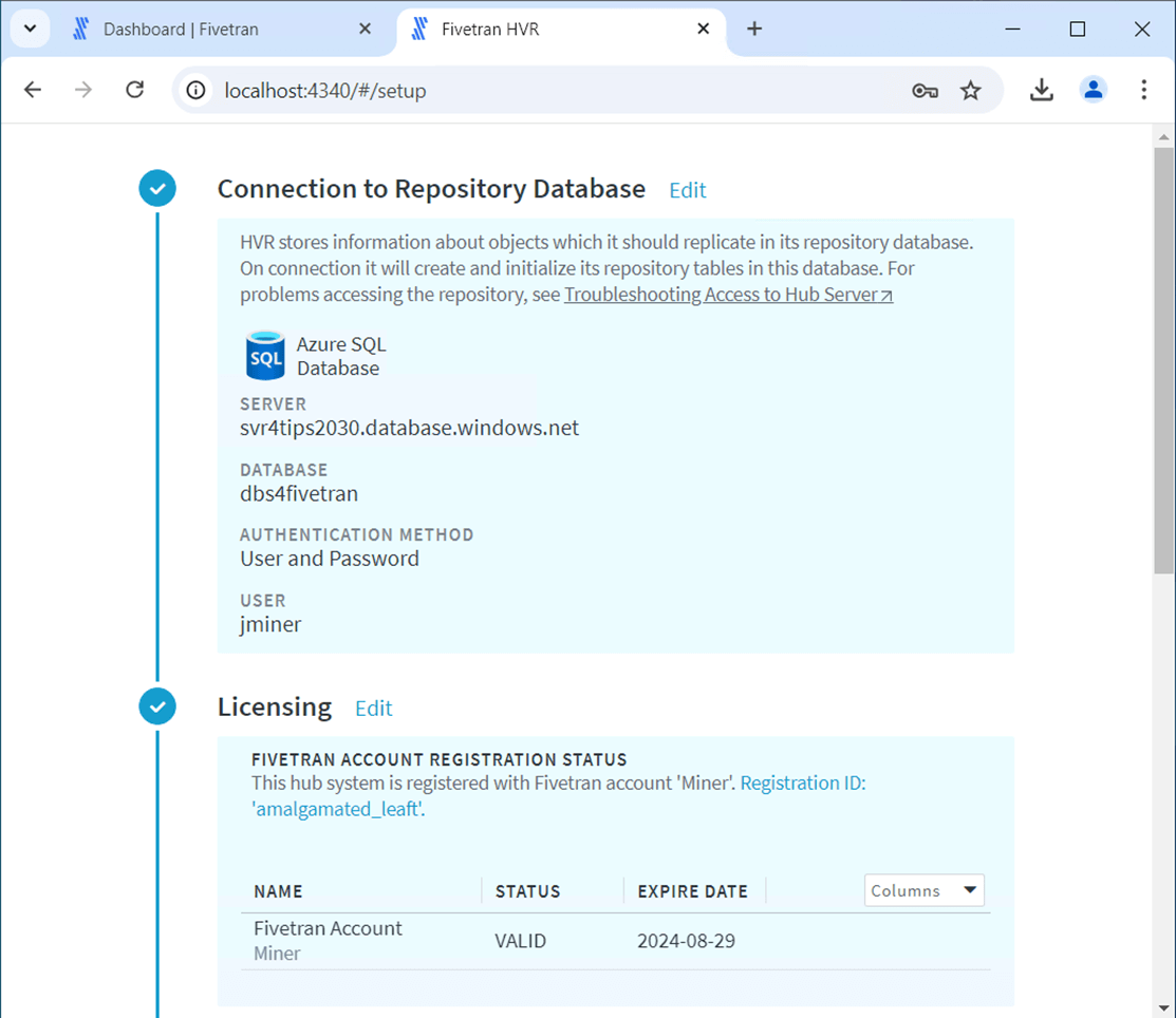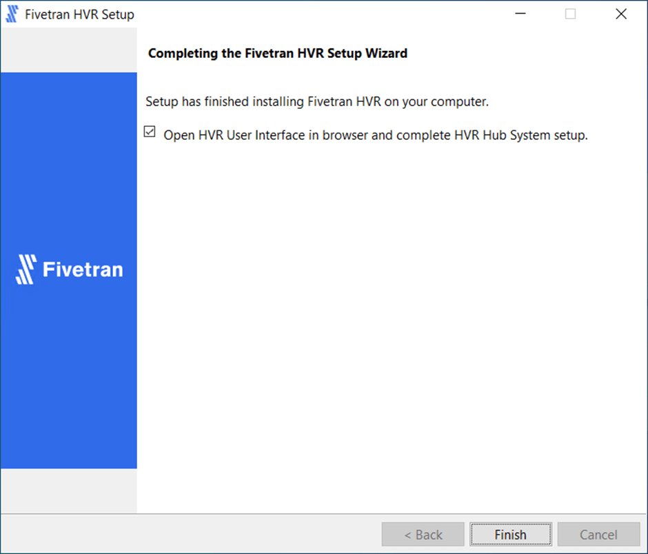 If you make it to the screen shot below, the Fivetran HVR Hub software has been successfully installed. It is now time to configure the software.