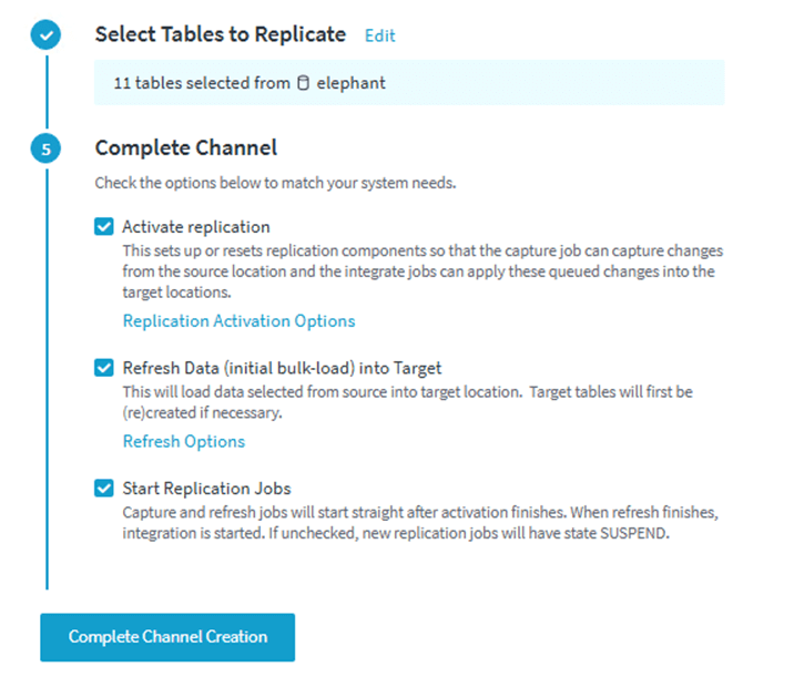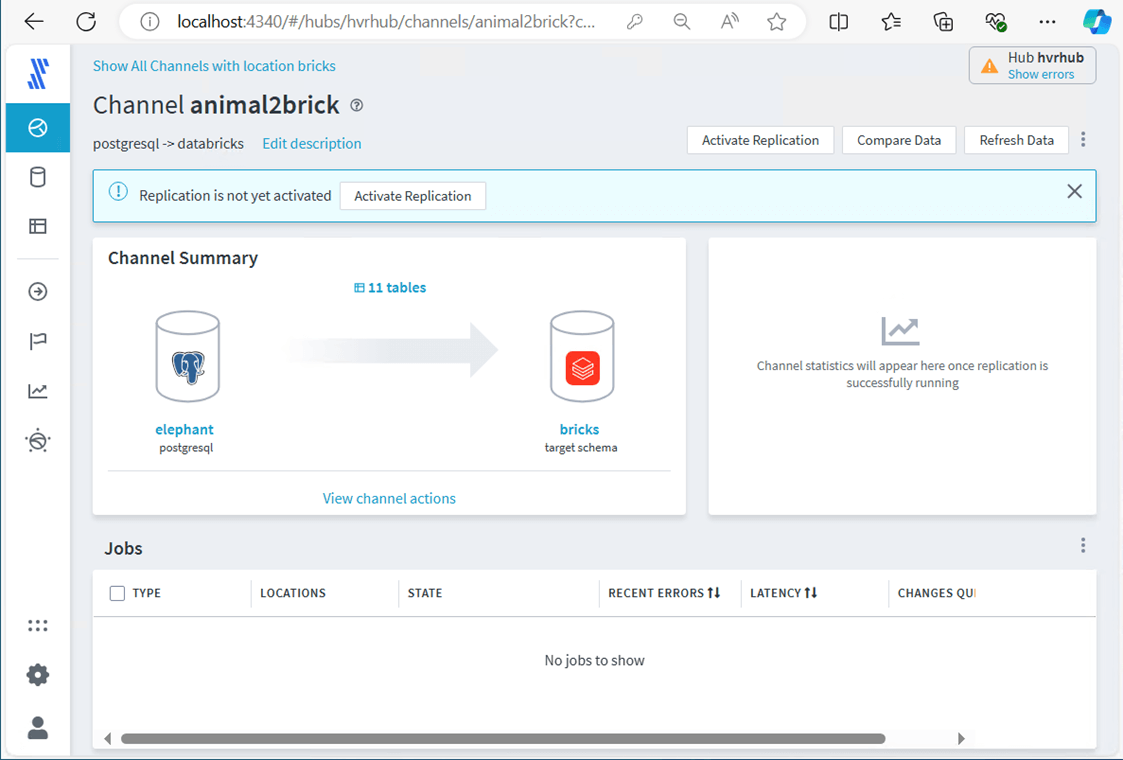 I will keep joking about how PostgreSQL is an elephant and Databricks is a brick. We essentially want to convert the animal into a brick. The image below shows the completed channel without starting replication. Let’s go over the details in the next few images.