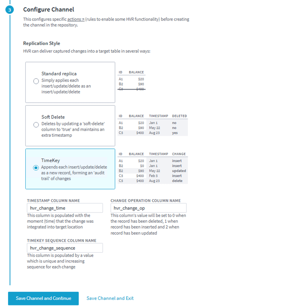 Steps 1 and 2 are focused on defining the source and target locations. I consider this step the most important part of replication. How do we want the software to act? There are three replication styles. Since I want to track all changes, I am going to select the TimeKey.