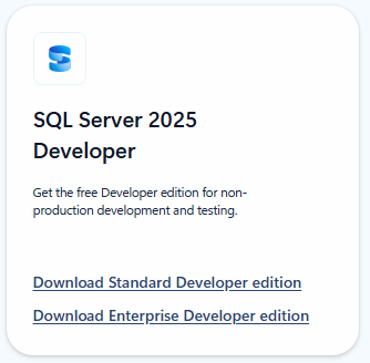 This time just a short heads up, as I wanted to download the ISO for SQL Server 2025, I noticed there is also a Standard Developer Edition ISO available.