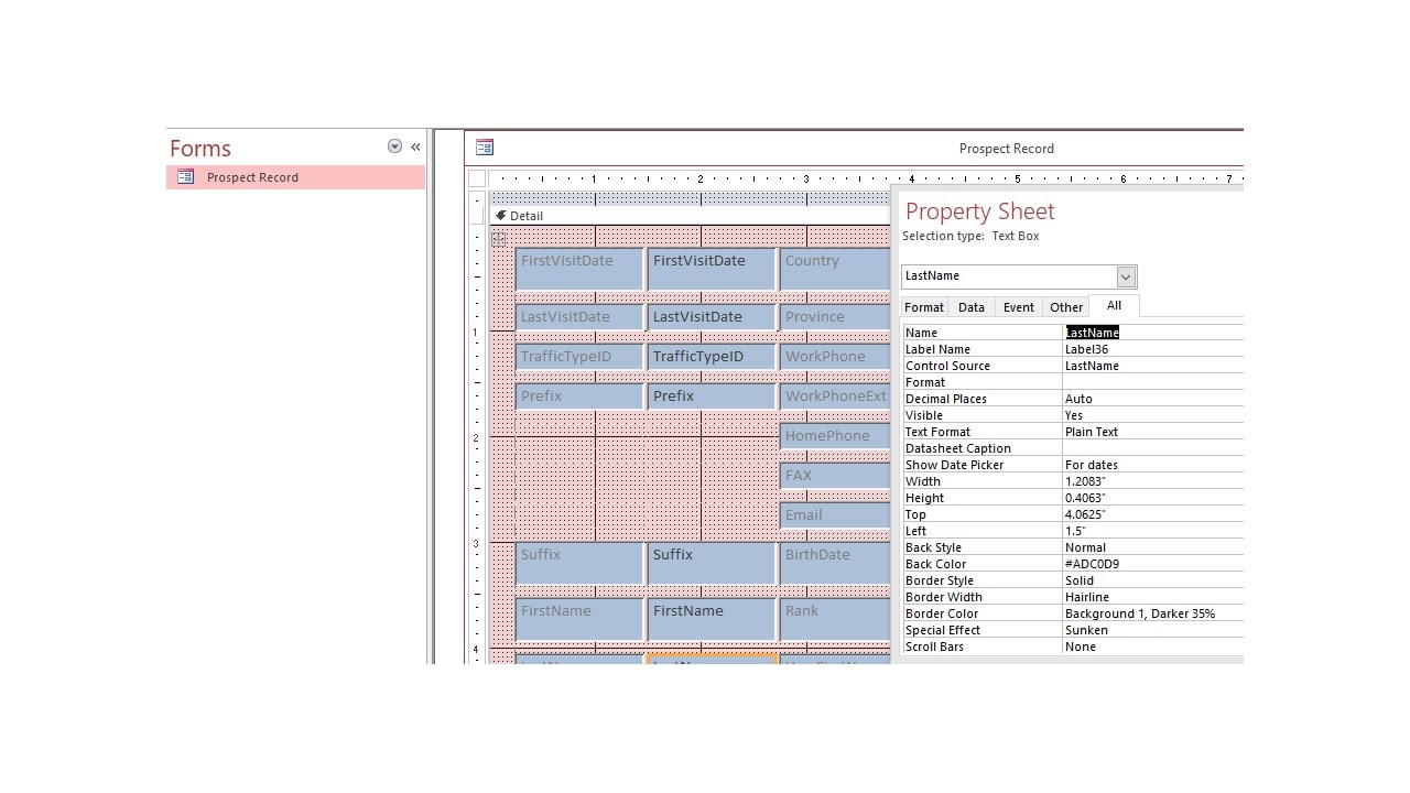 This program was a CRM used to track prospects for residential real estate sales offices. The Data Entry form V2 was used to enter the data through the MS Access Runtime Version.