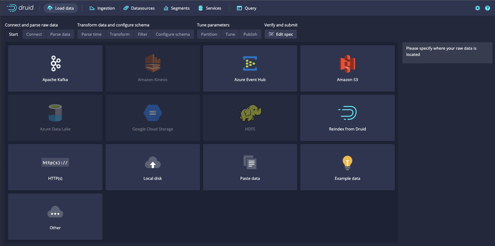 In Apache Druid, data ingestion is the pivotal first step in the journey of unlocking valuable insights from time-series data. Druid provides a wealth of options for ingesting data from various sources and formats, making it a versatile choice for handling diverse data sets. In this section, we'll explore the supported formats, data sources, and types of data ingestion available in Druid. Additionally, we'll provide a step-by-step process for data ingestion, complete with a CSV example.