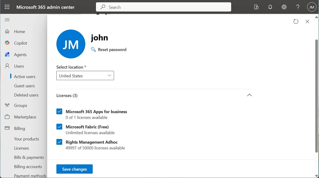 The next step is to assign the license to john@craftydba.com. This organizational account is used in both services as well as Microsoft Fabric.