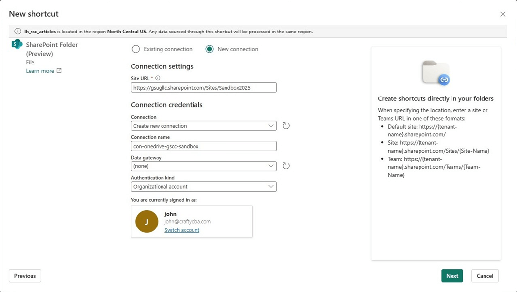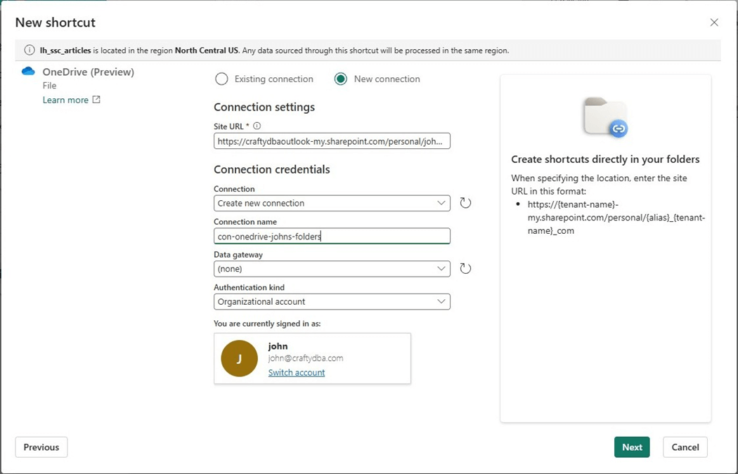 Both the OneDrive and SharePoint organizational services use the same base URL. Thus, it was easy for Microsoft to introduce this feature for both services at the same time. At this point in time, the Fabric Shortcut is read only. If you organization has data in these services and you want to ingest the data into a Fabric Lakehouse, please consider using a shortcut instead of a data pipeline copy activity.