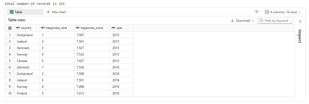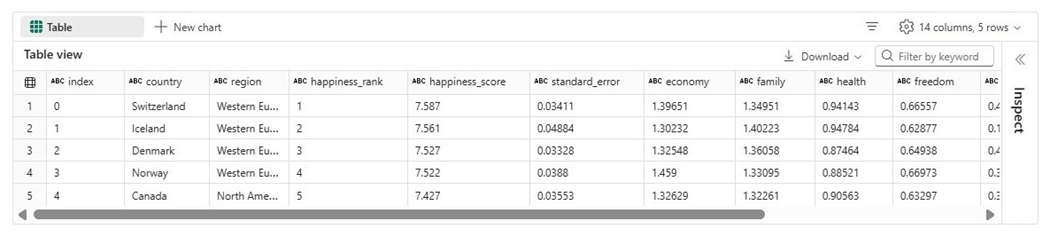 spark.read.format("csv").option("header","true").load("Files/Documents/datalake/world_happiness_report.csv")