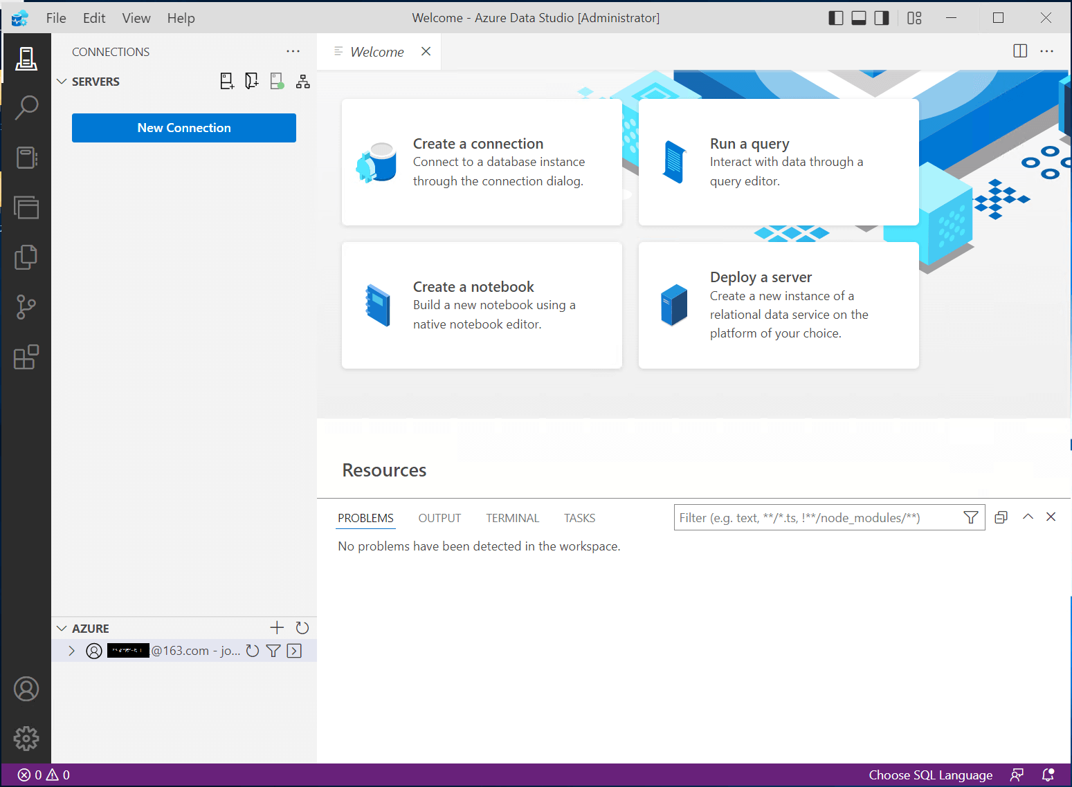 Step 1:Open the Azure Data Studio and log into your Azure account, go to the "Azure" tab under Connections.