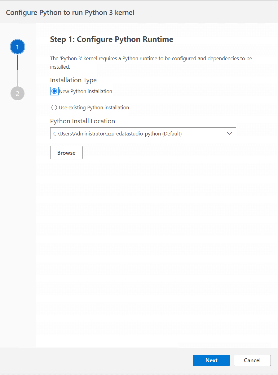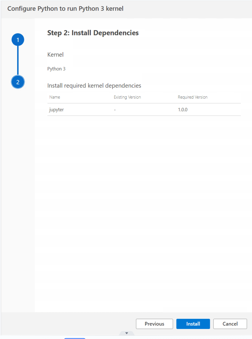 Step 10: Install the Python and Kernel dependencies of Jupyter if this is the first time you to use Azure Data Studio to deploy SQL Server: