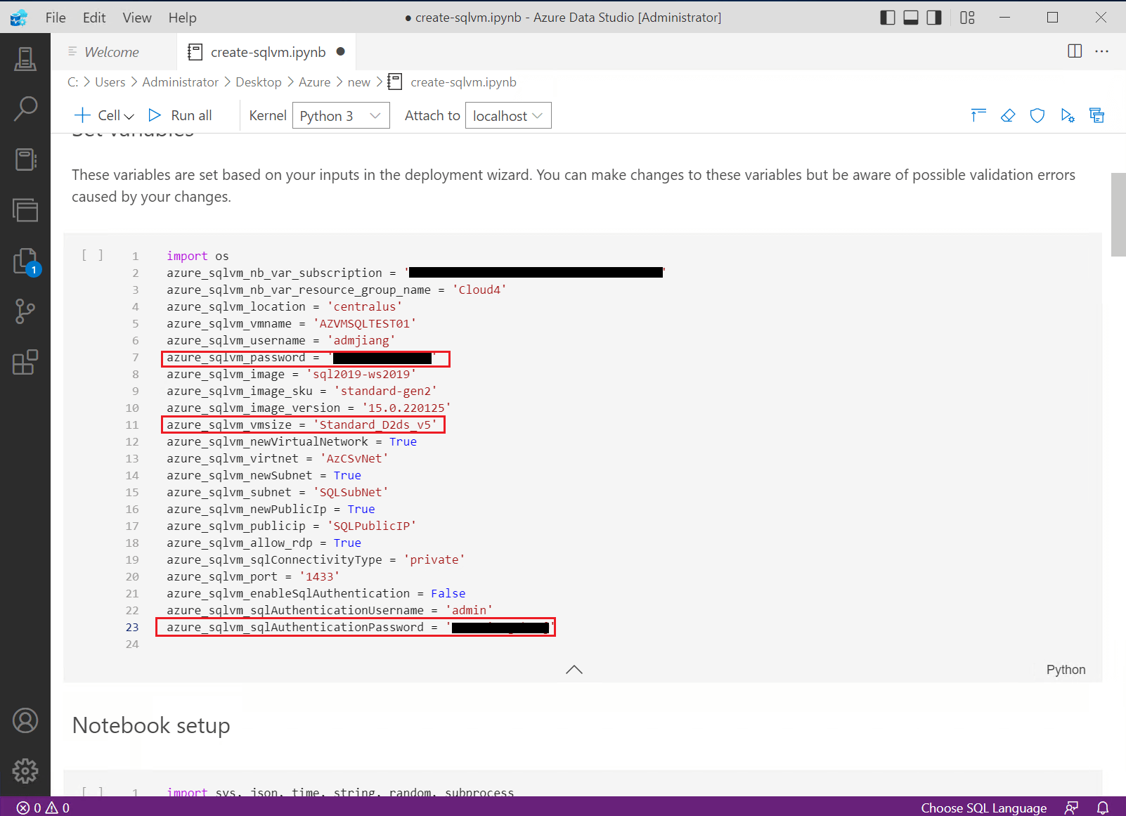 Step 12; Click on the "Run all" button to deploy this VM. You can save the file to a notebook file with the extended file name "ipynb" for reuse. The next you run this, you just need to update the variables: