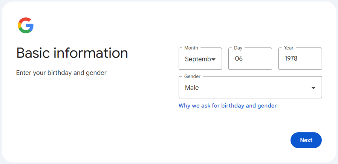Here is yet another set of demographic screens in which Google wants my personal information.