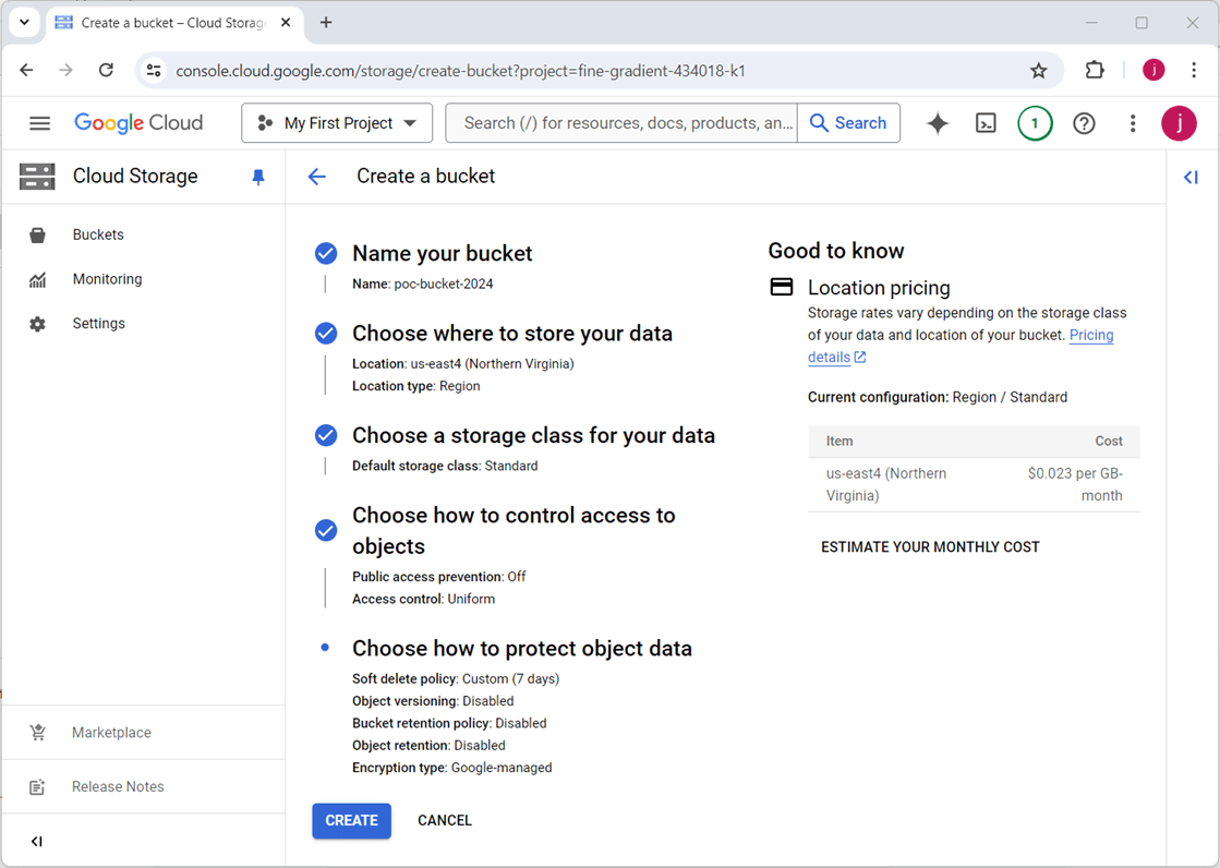 The main idea behind Fabric Shortcuts is the virtualization of data from GCP to Fabric using memory to cache the files. There are five steps to create a GCP bucket: supply a name, choose a region, pick a storage class, determine access controls, and select a data protection strategy.