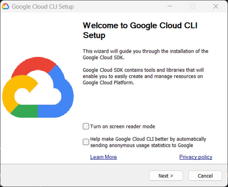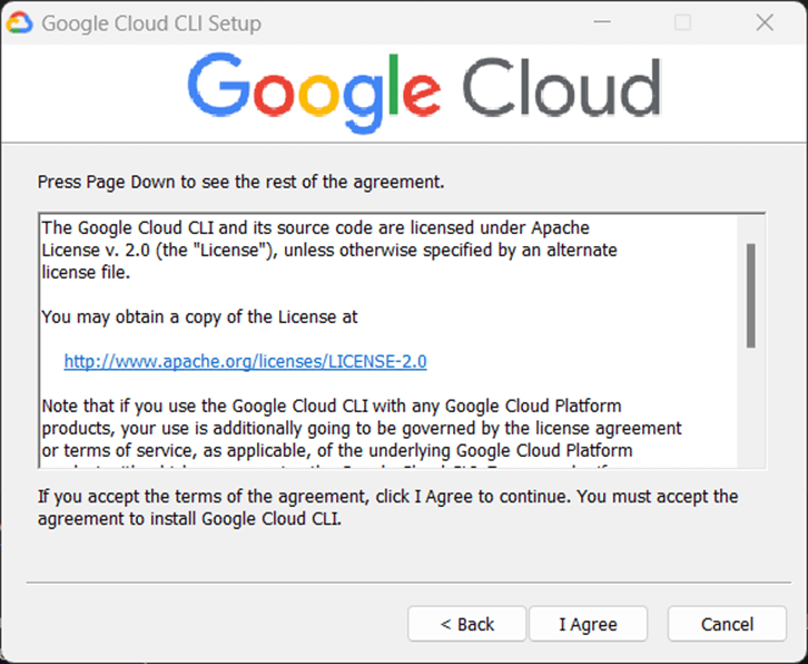 The next few screens go over the installation program for the Google CLI.