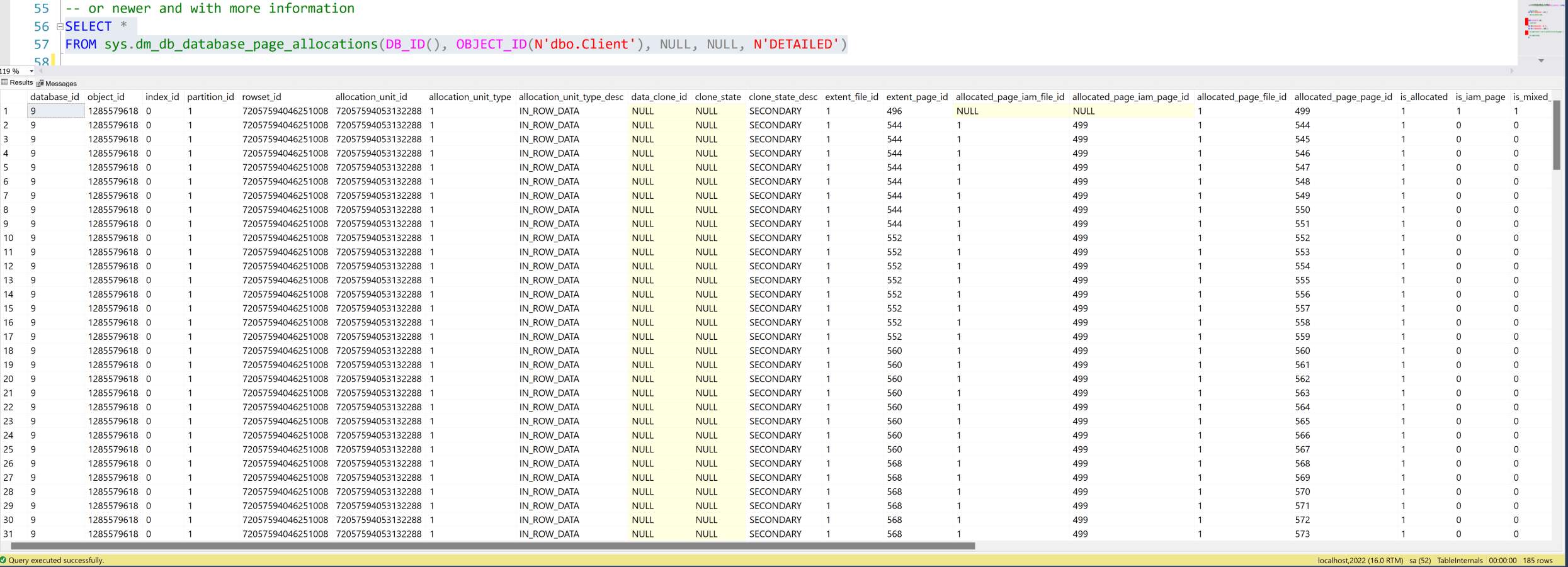 FROM sys.dm_db_database_page_allocations(DB_ID(), OBJECT_ID('dbo.Client'), NULL, NULL, 'DETAILED')