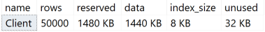 sp_spaceused Client