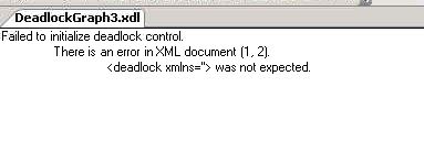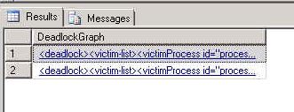 SELECT XEvent.query('(event/data/value/deadlock)[1]') AS DeadlockGraphFROM ( SELECT XEvent.query('.') AS XEventFROM ( SELECT CAST(target_data AS XML) AS TargetDataFROM sys.dm_xe_session_targets stJOIN sys.dm_xe_sessions sON s.address = st.event_session_addressWHERE s.name = 'system_health'AND st.target_name = 'ring_buffer') AS DataCROSS APPLY TargetData.nodes('RingBufferTarget/event[@name="xml_deadlock_report"]')AS XEventData ( XEvent )) AS src;