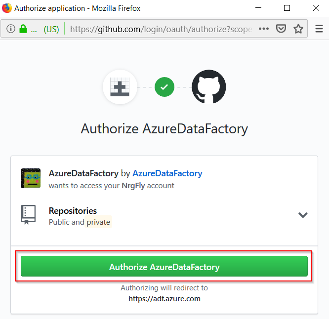 C) and make sure you authenticate your GitHub repository with the Azure Data Factory itself: