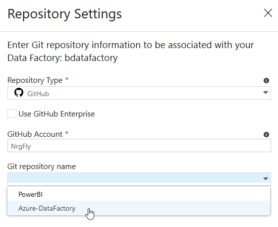 After selecting an appropriate GitHub code repository for your ADF artifacts and pressing Save button: