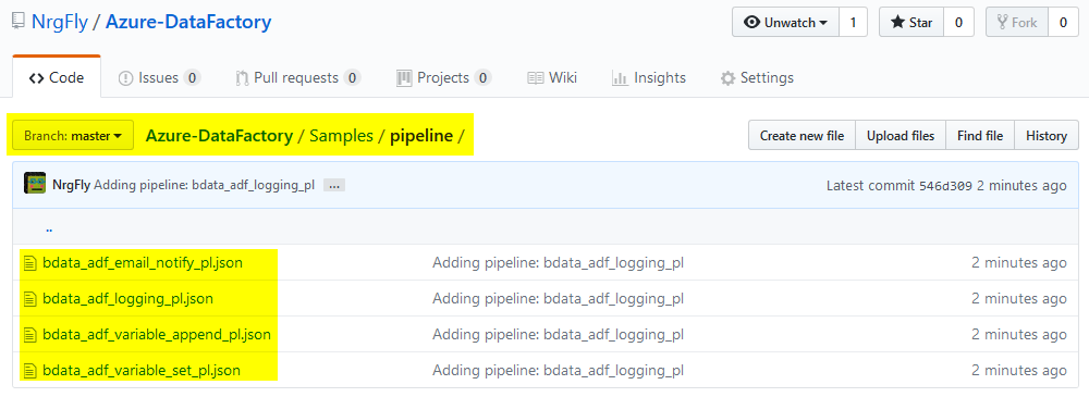 So now is the day to put all my ADF pipeline samples to my personal GitHub repository.