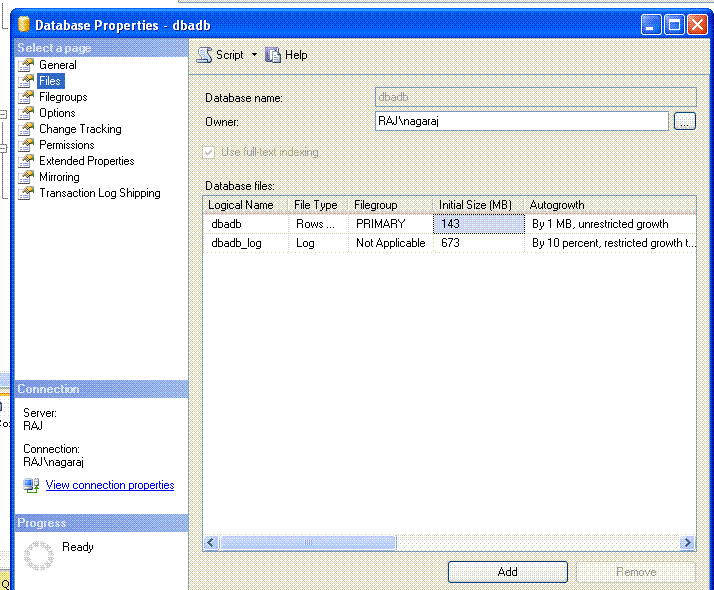 The database whose log file we will be clearing is dbadb. Log file size 643 MB as shown below.