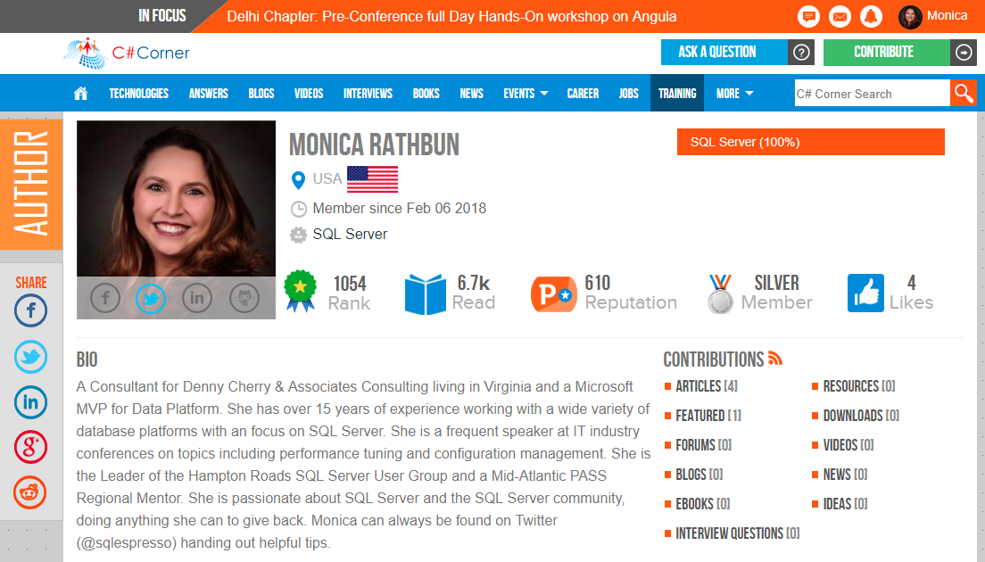 C# Corner, founded in 2000 is one of the largest software professionals (developers, IT pros, database) online community with 5.5 million monthly visitors and 2.4 million registered members. C# Corner contributors are industry influencers, MVPs, authors, and trainers from around the globe. C# Corner is always looking for industry experts for their opinions, contributions, and expertise to share with its millions of users. Since posting to their site, I have already had over 7,000 views and exposed to millions of readers worldwide.