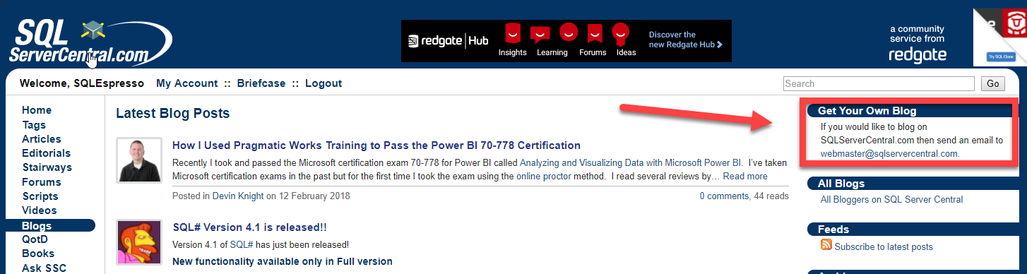 After a few months, I discovered that syndication could be setup on other sites such as SQL Server Central.  This allowed more people the opportunity to read my writing and expand my reach. Many sites, such as these will even send your blog out in newsletters like Database Weekly.