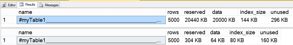 Here’s a quick demo to show you can do this. So first up we will create our Temp Table specifying with Data_Compression=ROW.