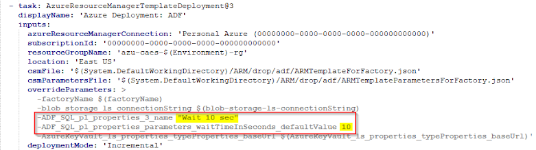 A quick illustration of how I can change parameters and even ADF activities' names during a deployment.