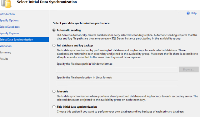 - Full database and log backup: Same as the Automatic seeding, however in this case it lets you choose where do you want to generate the backups