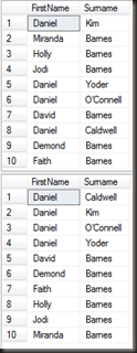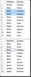 The difference comes in how the duplicates are eliminated. With an OR, SQL does the elimination of duplicates based on the key value regardless of what may be in the select list. With an UNION, SQL does the elimination of duplicates based on the select list, regardless of what the key value may be and in the above example there were two rows in the table with the value ‘Alfred Hickman’. So with UNION you can lose rows if they are duplicated in the table.