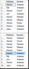 In that example, Herman Anderson appears once in the results of the OR query and twice in the results of the UNION ALL. That’s because it qualifies for both predicates. The OR eliminated the duplication, the UNION ALL does not.