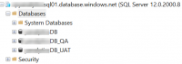 Open SSMS and connect to your Azure SQL Database server and expand the Databases folder. Notice there is now a QA database created by our PowerShell command.