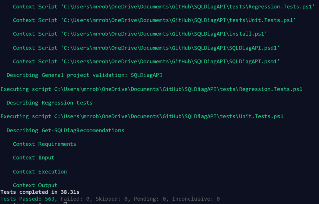 Then I could run all 563 of the Pester tests in the tests folder and be happy that everything was OK