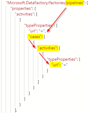 If those settings are still correct, then why I’m not getting any of the web activities URL properties extracted into my ADF ARM template. And then I realized after moving my web-activity task from the main pipeline level into a Switch Case activity, the original custom parameterization process couldn’t longer find them. I needed to make further adjustments to my custom parameters template.