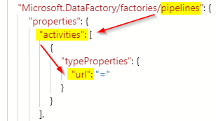 However, when I checked one of the web-activity tasks in my testing Data Factory after the deployment was finished, that activity still had a URL reference to a resource from the Development environment and not the Testing. That URL reference correction (overriding) used to properly happen during the deployment process. You can change the default parameterization template and prescribe your Data Factory to include some specific properties as additional custom parameters to deploy - https://docs.microsoft.com/en-us/azure/data-factory/continuous-integration-deployment#use-custom-parameters-with-the-resource-manager-template. I have also blogged about it two months ago - https://datanrg.blogspot.com/2020/06/raking-custom-parametersvariables-for.html