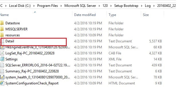 Open the folder for more details on the error. "Summary_*.txt" would be similar to the file read on log "\SQLVersion number\Setup Bootstrap\Log\summary.txt" . Identify the