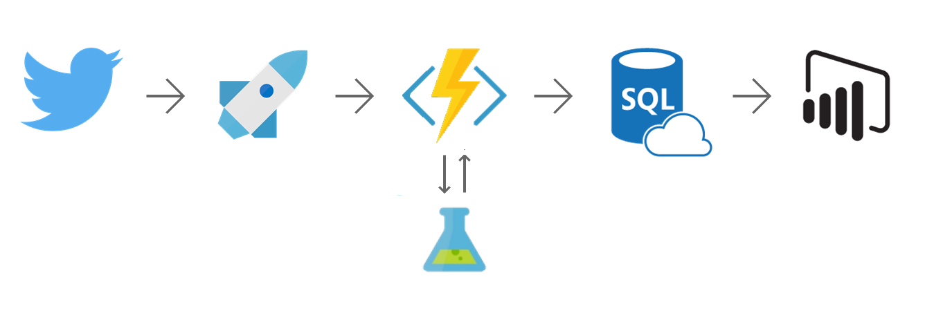 - Azure Function enriches tweet and writes it to Azure SQL