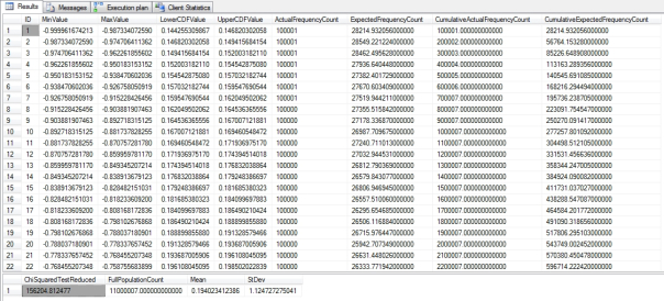 SELECT ID, MinValue, MaxValue, LowerCDFValue, UpperCDFValue, ActualFrequencyCount, ExpectedFrequencyCount, CumulativeActualFrequencyCount, CumulativeExpectedFrequencyCount