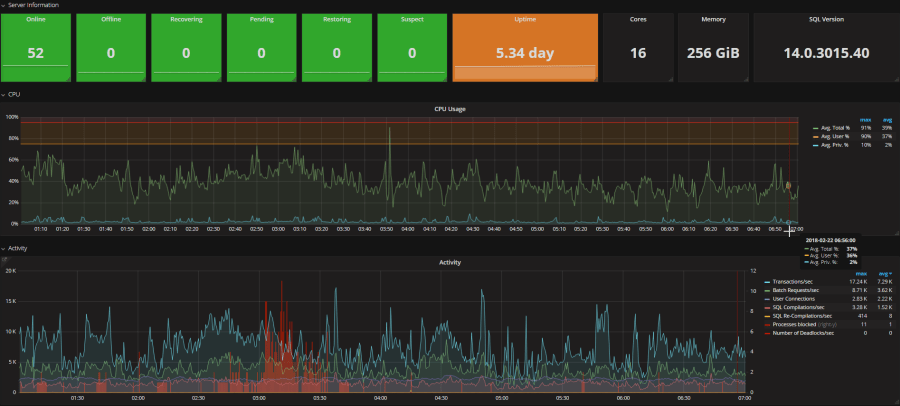 Looking at the SQL Instance Overview Dashboard