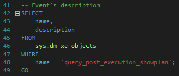 To create a new Extended Event Session, you can re-use the code from the previous part. Just replace the legacy extended event query_post_execution_showplan with the new extended event named query_thread_profile. The T-SQL script should look like this: