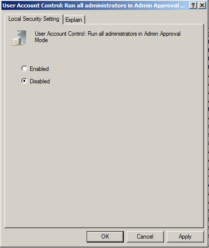 Click okay and now onto User Account Control: Run all administrators in Admin Approval Mode. Seriously? How many times do I need to say I’m sure this Admin account is an Admin?