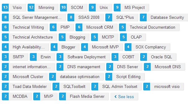 LinkedIn endorsements, accumulated after five years of blogging, writing, speaking, etc. |