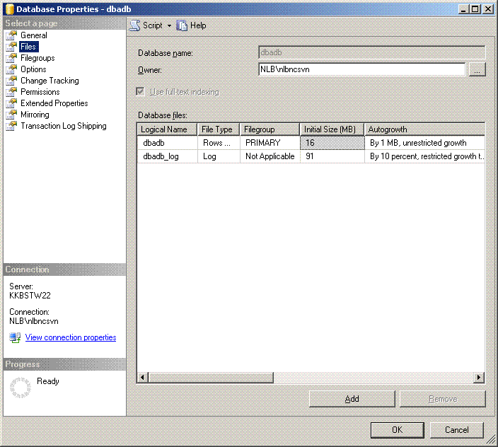 Let us take the sample database dbadb . The database size is 107 MB with data file size being 16 MB and log file size being 91 MB. A full backup file size is only 3.2 MB