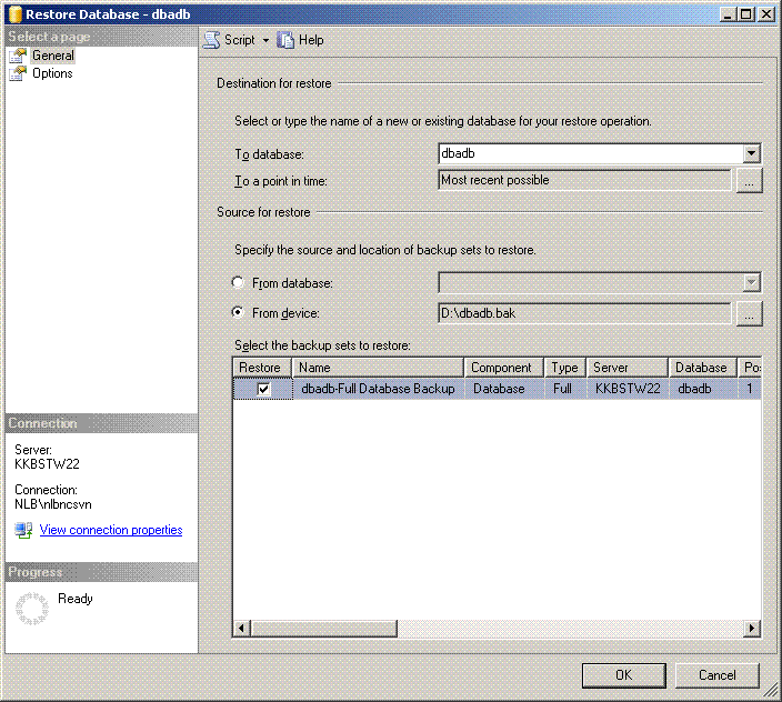 Restore of Database