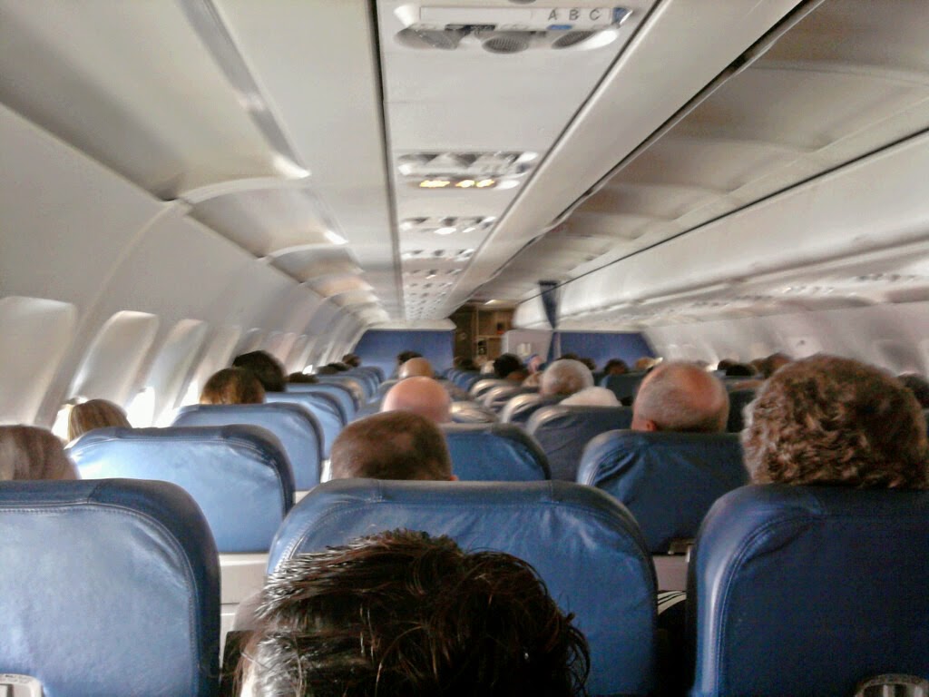 The call attendant light! That's the ticket. I hit my button, eyes locked on the flight attendant. BINGO! She sees me.