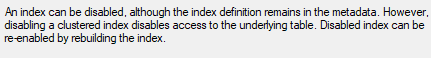 That’s right, in order to re-enable an index, you have to rebuild it. Ouch.