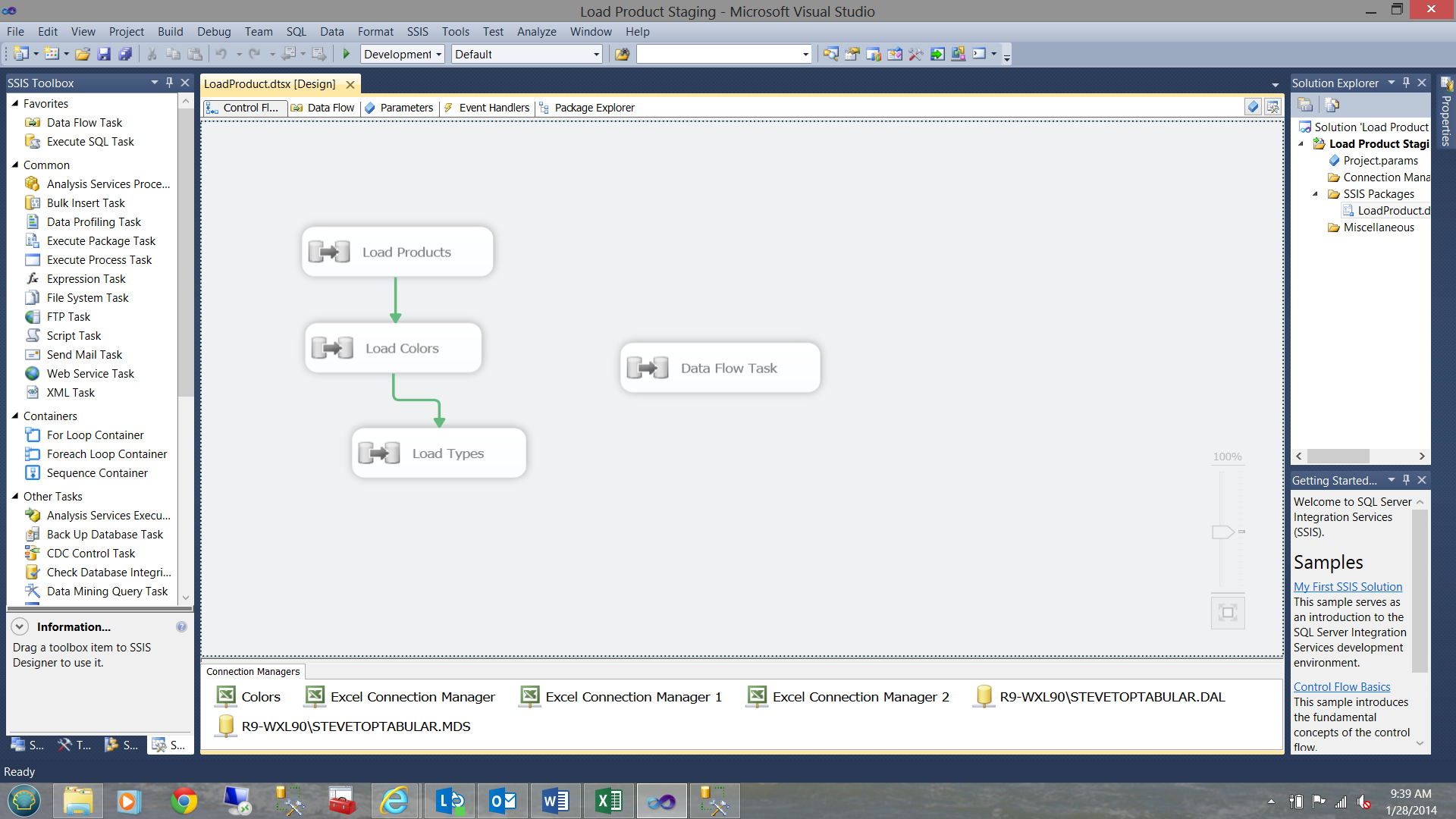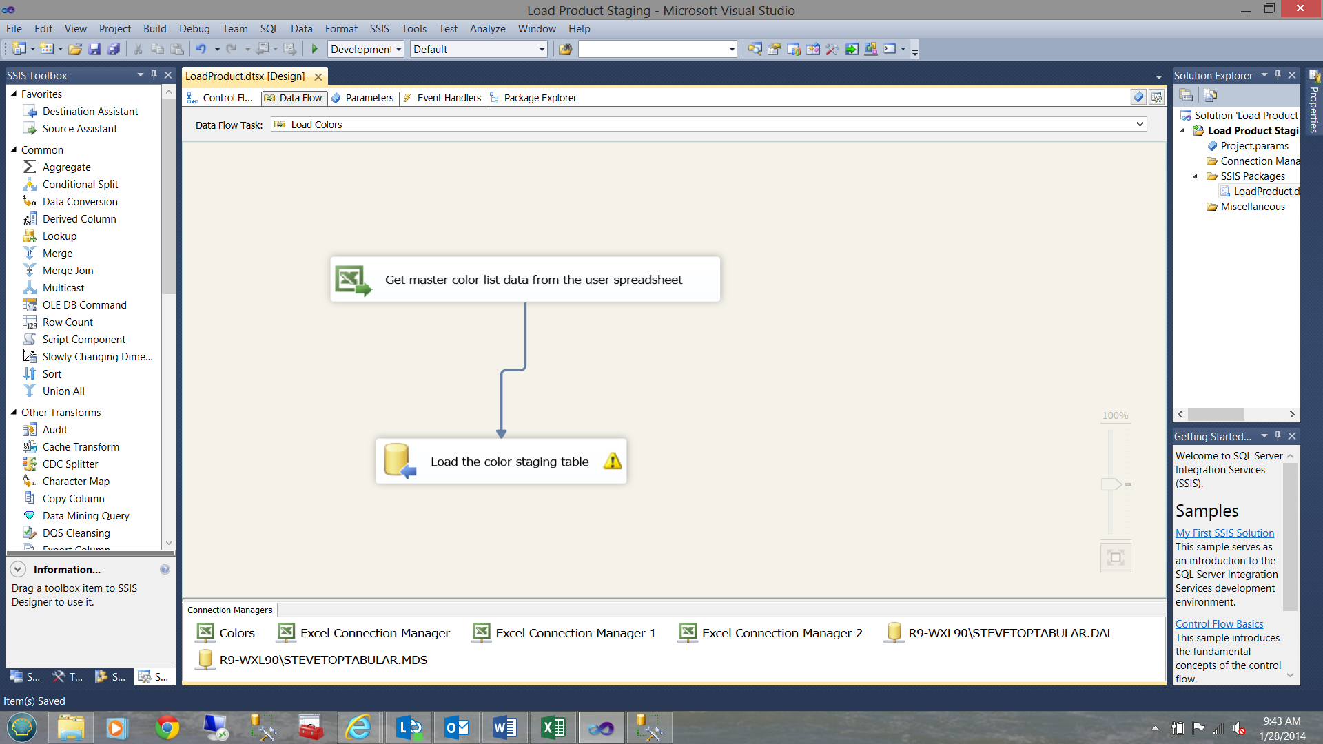 4) We have looked at an SSIS package to load the data from a spreadsheet into the staging table.