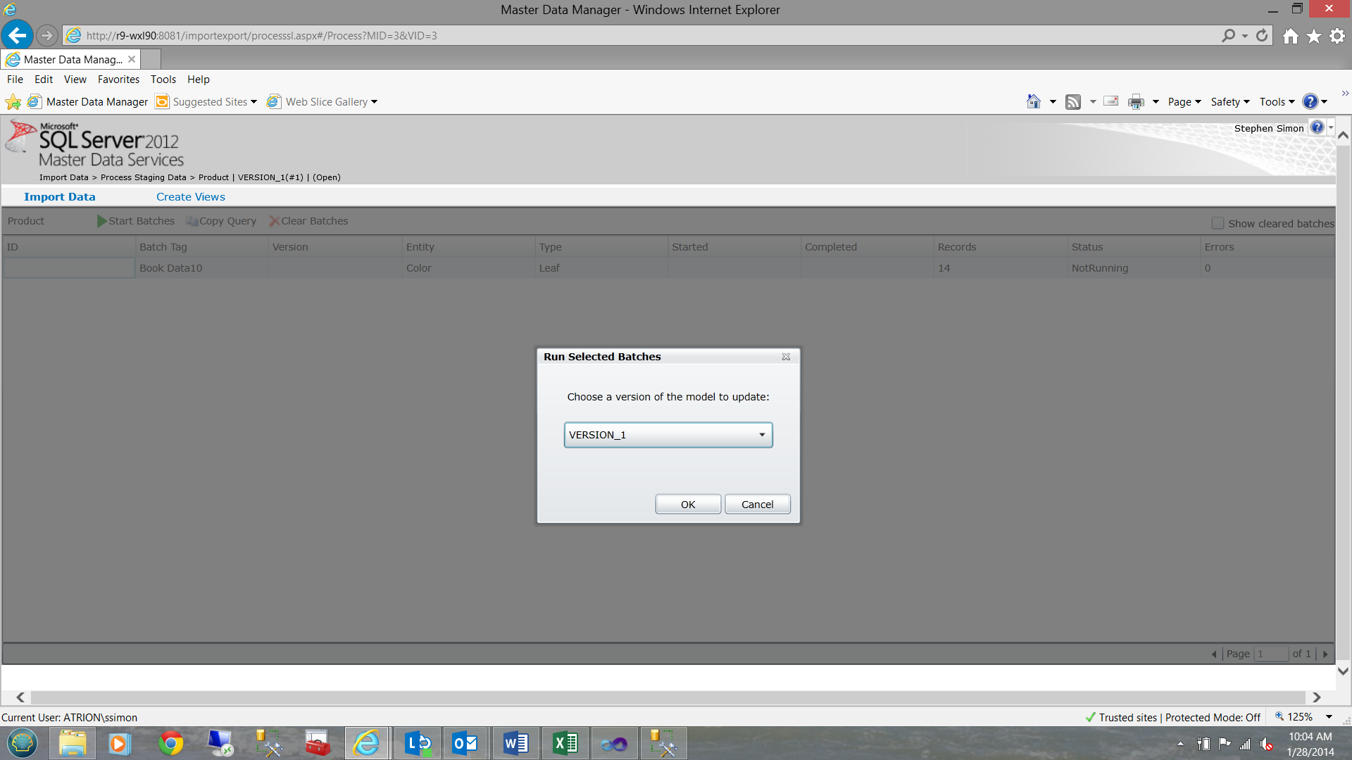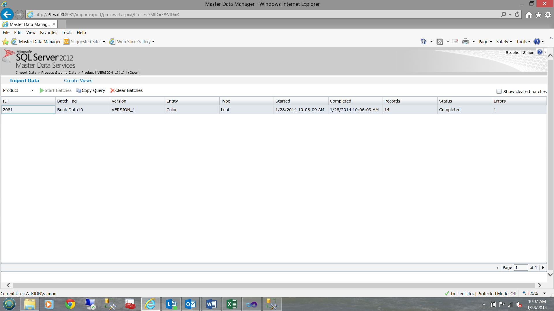 What we now need to do is to “push” this data from the staging table into the MDS database (for production usage). In short, this data is not yet visible to the user.