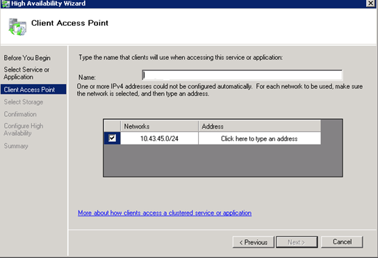 - Select Next which will open the client access point configuration screen as given below.Enter the network name and IP address which we have noted down in the first step.