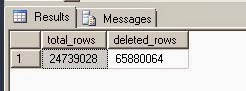Let’s now “delete” a bunch of rows. I used a script by Pinal Dave to randomly delete several million rows from the table. What’s left over is a table that hasn’t changed at all. Even though I just deleted about 65 million rows, the physical size is still the same; 2.6GB.